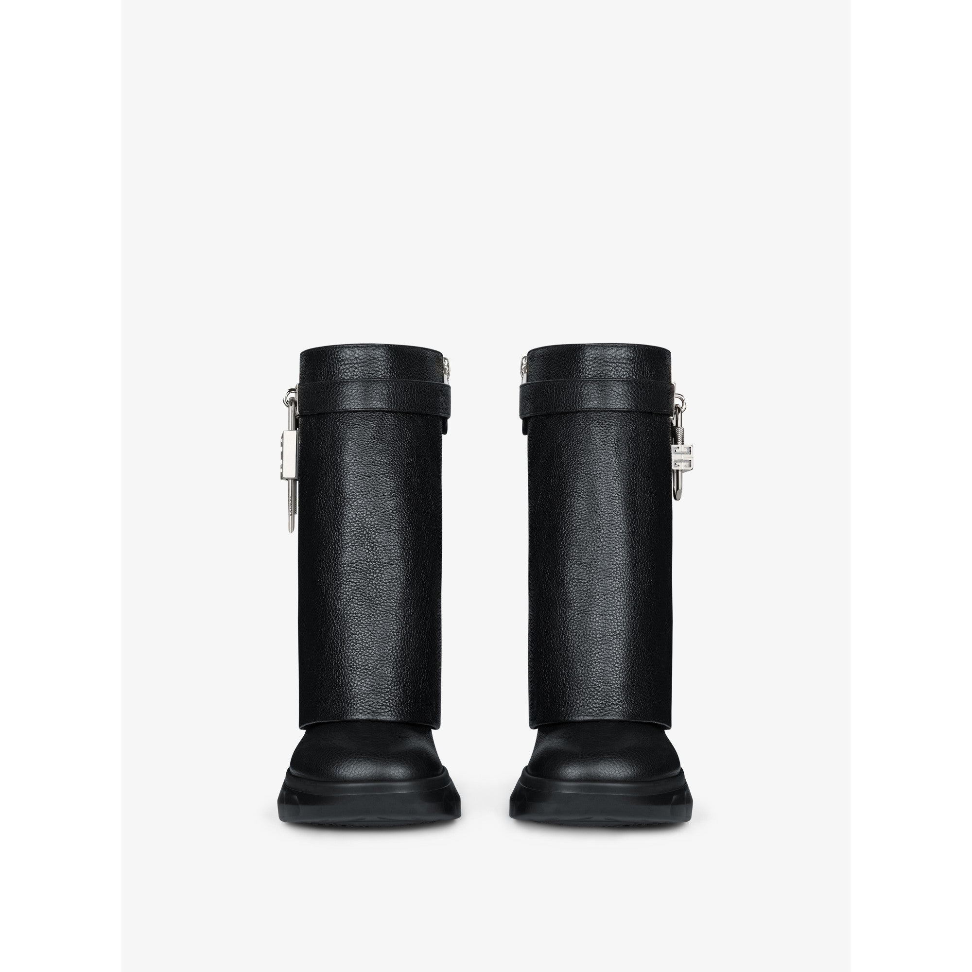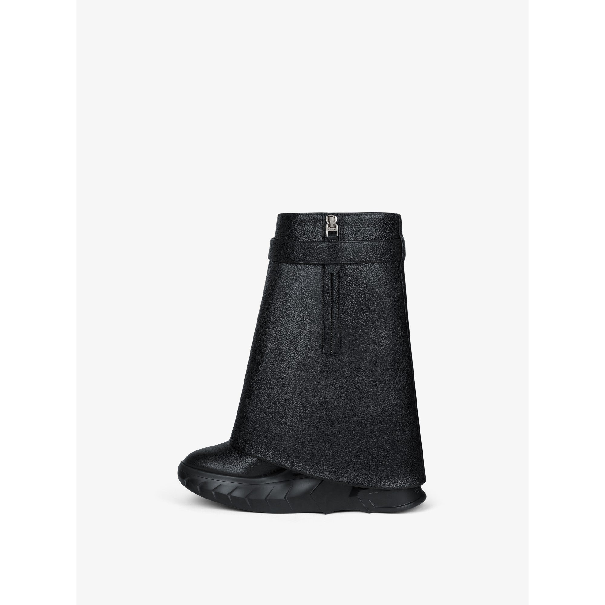 Women shark lock ankle boots biker low wedge - black