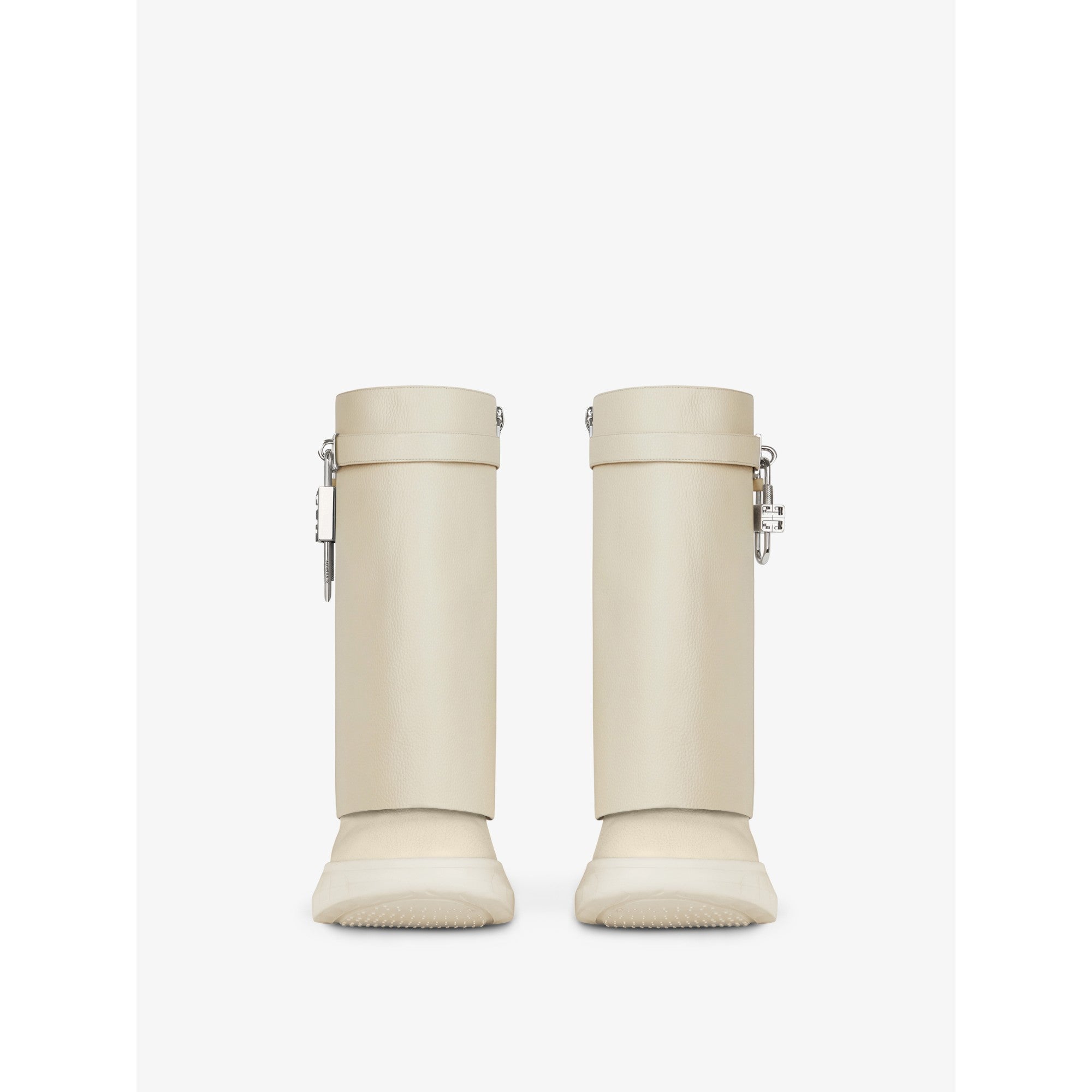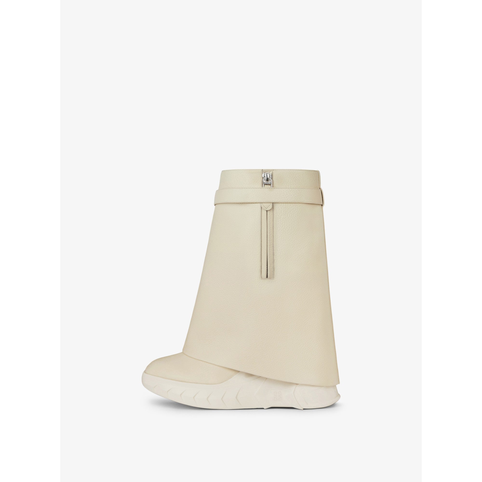 Women Shark Lock Ankle Boots Biker Low Wedge - Beige