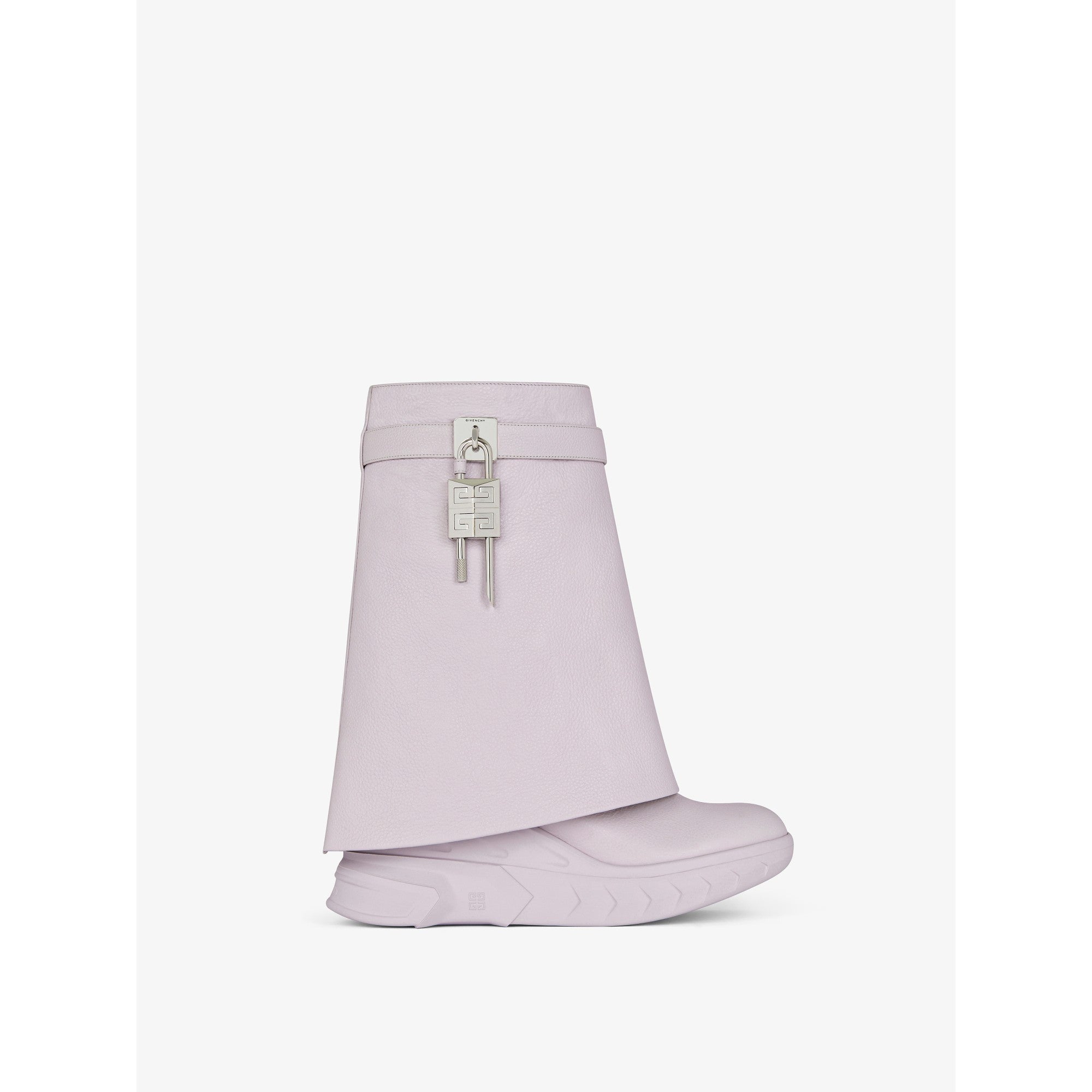 Women shark lock ankle boots biker low wedge - soft lilac