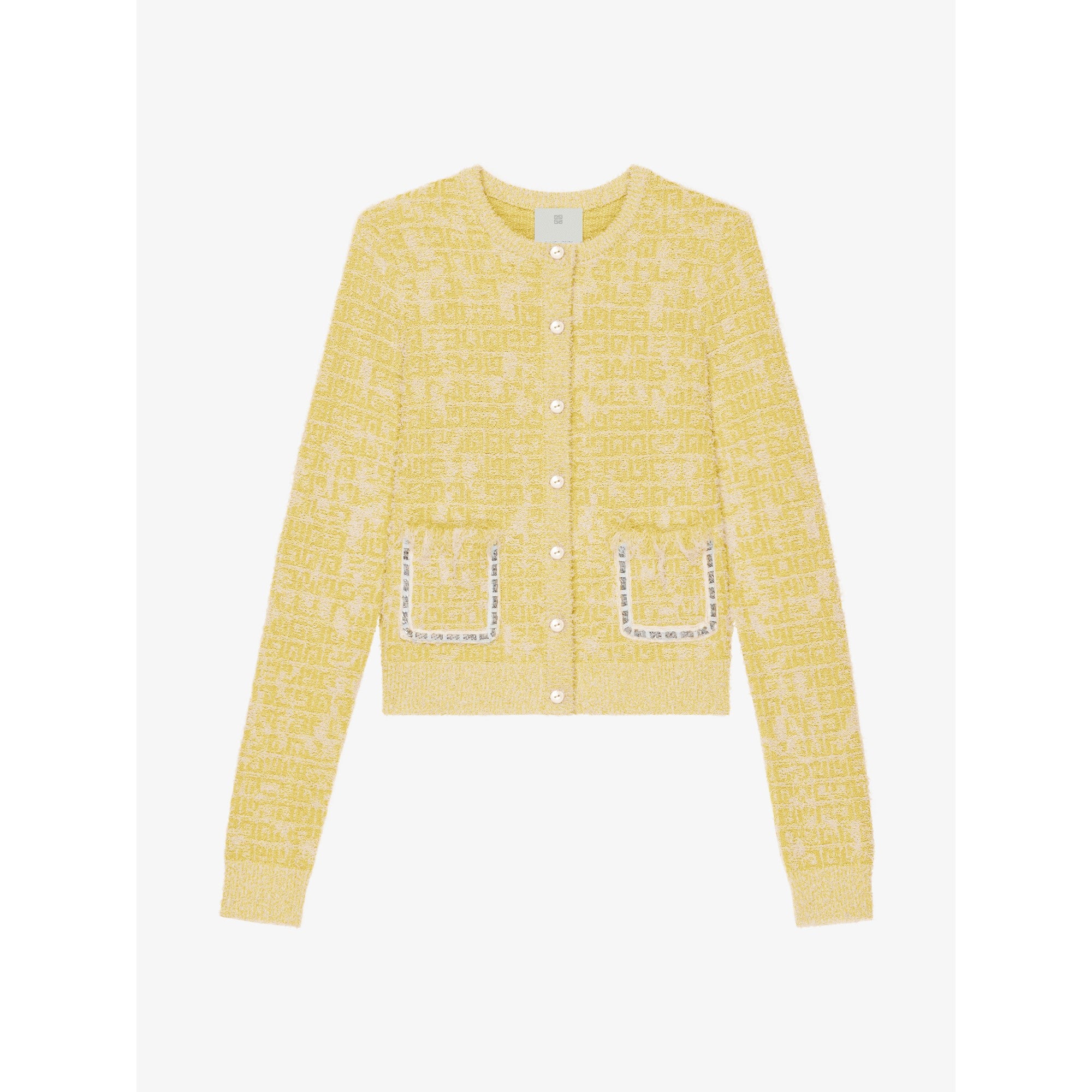 Women Cardigan Chain Front Pocket - Yellow/White